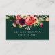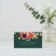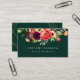Elegant watercolor bohemian style flowers, feathers and foliage in chic shades of purple, burgundy, pink, peach and green with gold geometric accents on back, business cards. Background colour, shown in emerald green, can be customised.