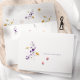 A beautifully designed return address envelope featuring a delicate watercolor floral arrangement in soft purple and yellow tones. The elegant serif font adds a sophisticated touch, making it perfect for wedding invitations, personal correspondence, or special occasions. Printed on high-quality textured paper for a refined look.