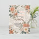 Announce your elegant affair with this sophisticated design featuring a faux embossed relief effect. The romantic artwork highlights a wreath of peach roses and coral ranunculus in a 3D paper craft style, flat printed to simulate high-end texture and shadow depth. Easy to customize with your details for a timeless, luxury aesthetic.