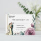 This elegant watercolor floral wedding RSVP Card is perfect for a modern wedding. The romantic design features an elegant watercolor floral frame with a bride and groom illustration and black calligraphy on a white background.