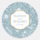 Elegant Floral Garden Gold Dusty Blue Wedding Classic Round Sticker