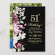 Elegant Floral Gold 51 Birthday Photo Invitation