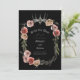 Beautiful frame with roses, leaves, and thorns enclose your save the date announcement information. Black letter calligraphy typography adds to the elegant look. Perfect for a gothic wedding save the date announcement. See coordinating items in our shop, Enchanted Finch.