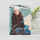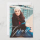 Announce your graduation in style with an elegant floral graduation announcement. The design features the word "grad" in a fancy script font, placeholders for custom text and an image, and a pretty floral pattern on the back.