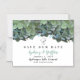 Green hydrangea flowers, save our date magnetic card. Elegant floral border along the top with two hearts entwined above custom lines of text. Printed and script fonts are modern and fun, with names of the couple in light green to match the flowers.