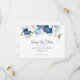 Elegant floral watercolor dusty blue, white, and navy floral bouquet wedding save the date card. The card features a script "Save the Date", that can be changed to a font type of your choice that are available here when you click the "Personalise" button.
