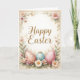 Celebrate Easter with grace using this beautifully designed card featuring pastel flowers and delicate Easter eggs. The elegant typography and soft colours make it a sophisticated choice for sending heartfelt Easter wishes. Perfect for loved ones or as a decorative piece for Easter gatherings.