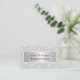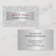 This elegant off-white business card is shown here for a Wedding Planner role, but it can be customized for any role in which you want a light, lacy textile look. Delicate flowers and vines entine in white against a subtle off-white background on the front, wth your name in a dark red, reminscent of romantic roses, on faux brushed silver, with your title in black. On the back are two sections for text -- the top has larger text for the most pertinent details with the rest of your contact info below. Type the information you want in the Personalize section to create your custom card.