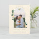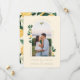 Our lemon chiffon wedding save the date photo card design captures sophistication & elegance with our original hand-painted watercolor lemon tree with yellow blossoms, flowers, and leafy foliage. Crisp citrus yellow shades are paired with deep jade greens to create this fresh wedding design. An elegant arch photo frame to add your special photo. All of the florals and artwork are meticulously hand-painted by us, to create our unique memorable wedding designs. Personalise the text, font, and background colours to suit your design preferences.