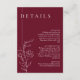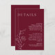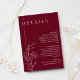Elegant Floral Line Art Burgundy Wedding Details Enclosure Card