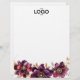 3 blooming flowers in deep red, purple and golden details and leaves are grouped in a soft bow on the lower part on each sheet. ,Add your logo ot the top to customise for your company. This are placed all the way on the top.