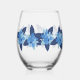 Elegant Floral Monochromatic Blue Design Stemless Wine Glass