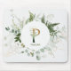 This mousepad features a pretty green foliage watercolor wreath and an alphabet "P" to be personalised with her name underneath.