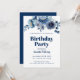 Elegant Floral Navy Blue Birthday Party Invitation