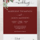 Elegant Floral Burgundy Navy Blue Watercolor Wedding All in One Invitation. Floral Burgundy Blush blue Botanical Greenery Eucalyptus Watercolor print.