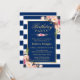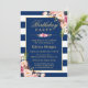 Elegant Floral Navy Blue Stripes Birthday Party Invitation