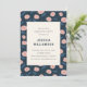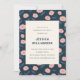 Celebrate your graduate with this elegant floral graduation party invitation. Featuring a navy blue background adorned with soft pink flowers, this stylish design combines modern minimalism with a touch of vintage charm. The customisable text box provides space for event details, making it perfect for high school and college graduation celebrations. Personalise with the graduate’s name, class year, location, and RSVP information.