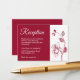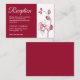 This elegant and minimalist wedding reception card features a beautiful and delicate crimson red orchids line drawing design, over a classy white background on the right side. Easily edit the template fields to add your reception information in a modern and simple white font over a crimson red background on the left side of the card.