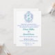 This wedding invitation showcases an elegant blue line art design featuring an ornate oval frame adorned with floral motifs, ribbons, and bows. The intricate details create a vintage and refined look on a white background, perfect for a traditional or formal wedding theme.