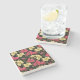 The coasters are gorgeous, a quality feel and heavy weight. They look like a precious archeological find. A rustic stone juxtaposed with a modern floral black and white print. I like the way the print goes slightly imperfect on the cut stone edges giving them a kind-of natural beauty.