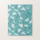 Elegant Floral Pattern - Teal & White Botanical Jigsaw Puzzle