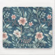 A sophisticated floral pattern mousepad featuring pink, peach, and cream blossoms with lush green and teal foliage, set against a rich navy background with a subtle textured finish. The intertwined design creates an organic, flowing layout with added charm from small berry-like clusters. Perfect for classic, romantic, and vintage-inspired themes.