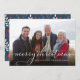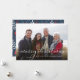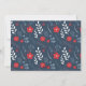 This photo holiday card features the phrase "merry christmas" in a modern elegant white script in the foreground and your photo in the background. The back features a beautiful blue and red winter floral pattern ©HajDesignPapers.