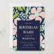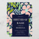Elegant Floral pink and blue Birthday Bash invitation for adults