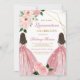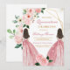 Celebrate a milestone in style with this elegant floral Quinceañera invitation. Featuring pink roses, lush greenery, and gold geometric accents, this design beautifully highlights the sophistication of the occasion. The charming illustration of two girls in pink ball gowns adds a festive and personal touch, making it perfect for honouring a special young lady. Ideal for family gatherings and formal celebrations, this invitation sets the tone for an unforgettable evening.