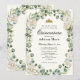 This elegant quinceanera invitation has ivory and green flowers around a frame, a gold tiara crown, and an ivory background with a personalizable template to create your own design. The invitation template is customizable in the listing editor and is also available as a digital download that's printable after you personalize it. This design would be nice for an enchanted garden themed Quince.