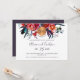 Red coral, navy blue and dark indigo bohemian flowers bouquets and a round faux metallic gold copper monogrammed circle making a modern glam horizontal engagement party invitation with a trendy chic fully editable typography script. +++++++++++++ Easy to personalise with your details! Suitable for garden theme couple parties - summer or autumn fall.