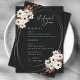 These 5" x 7" wedding rehearsal dinner invitations, feature a beautiful floral design in shades of black, rust and ivory with accenting oval shapes on a black background. Placeholders for bride & groom names, rehearsal & rehearsal dinner details.