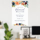This elegant floral rehearsal dinner welcome sign is perfect for a summer wedding rehearsal. The design features neatly hand-drawn bouquets of pink, blush, yellow, burgundy, red, indigo flowers and green foliage, inspiring natural beauty.