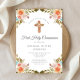 Personalised Elegant Floral Religious Cross First Communion Invitation