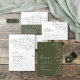 Elegant delicate hand drawn flower illustration and modern script typography details, in dark sage green and white colour, simple and romantic. Great floral rehearsal dinner invitations for modern rustic wedding, country garden wedding, and simple boho wedding in summer and winter.