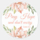 These elegant Christian stickers have a pink watercolor floral design with an inspirational Saint Padre Pio quote: Pray Hope and don't worry.