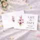 A beautifully designed save the date card featuring delicate watercolor flowers in soft pastel tones. The elegant typography and minimalist layout create a sophisticated and romantic feel, perfect for announcing your special day. Fully customisable with names, date, and personal details.