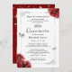 Elegant Floral Silver and Red Quinceanera Photo Invitation