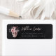 A spooky chic Halloween themed return address design featuring a floral skull illustration topped with pink and purple watercolor flowers on a smoky black background. Personalise with your return address.