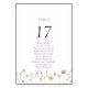 A beautifully designed table number card featuring delicate watercolor flowers in soft pastel tones. The elegant typography and minimalist layout create a sophisticated and romantic feel, perfect for weddings, anniversaries, and special celebrations. Fully customisable with table numbers, names, and event details to guide guests seamlessly to their seats.