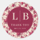 This is a vintage style image featuring an elegant floral pattern with rich red roses and delicate birds on a cream background. At the centre, a deep maroon circle showcases the initials "L | B" in bold white letters, followed by a heartfelt "THANK YOU" message and the date "MAY 23, 2026." The composition exudes sophistication and warmth, making it perfect for expressing gratitude at weddings or special events. It inspires feelings of appreciation and timeless charm.