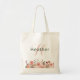 Elegant Floral Tote Bag. This beautiful design features dusty pink roses and dahlias, cream hydrangeas, and green and burgundy eucalyptus leaves. Personalise with the name and initial for a unique and stylish gift or a lovely keepsake for yourself.