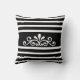 Elegant floral vector on black and white striped background Throw Pillow.