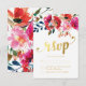 Elegant Floral Watercolor White Gold Wedding RSVP Card