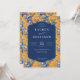 This is a vintage style image featuring an elegant wedding invitation with a rich navy blue central panel surrounded by vibrant orange floral patterns. The intricate white flowers and greenery create a classic, romantic atmosphere that feels both timeless and sophisticated. Perfect for setting the tone of a beautiful celebration, this design invites guests to join in the joyous occasion with its warm and inviting aesthetic.