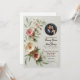 • This wedding invitation features a delicate arrangement of soft pink and cream floral designs, accented with lush green leaves on a subtle background. Perfect for couples seeking a romantic yet timeless aesthetic, the design leaves space to include a personal photo. Ideal for modern, elegant, or garden-themed weddings.