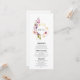 A beautifully designed wedding menu featuring delicate watercolor flowers in soft pastel tones. The elegant typography and minimalist layout create a sophisticated and romantic feel, perfect for any wedding reception. Fully customisable with your chosen dishes, names, and date to complement your special day.