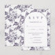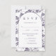 Simple and elegant wedding rsvp card features a beautiful violet colour botanical pattern on the back, and classic bold rsvp typography on the white front of the card. Meal choice and response date are included in the editable text.