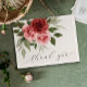 This vintage-inspired wedding thank you card design features stunning watercolor roses in shades of red and pink, paired with muted green foliage. The soft, neutral colour palette complements weddings of all seasons, especially for fall weddings. Ideal for couples looking for a timeless, romantic, and elegant design to express their gratitude.
