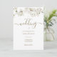 Pretty floral wedding white blossom invitation featuring delicate spring blossom framing your wedding details in elegant gold lettering. Personalise with your special event details. The reverse features scattered white blossom petals. Designed by Thisisnotme©